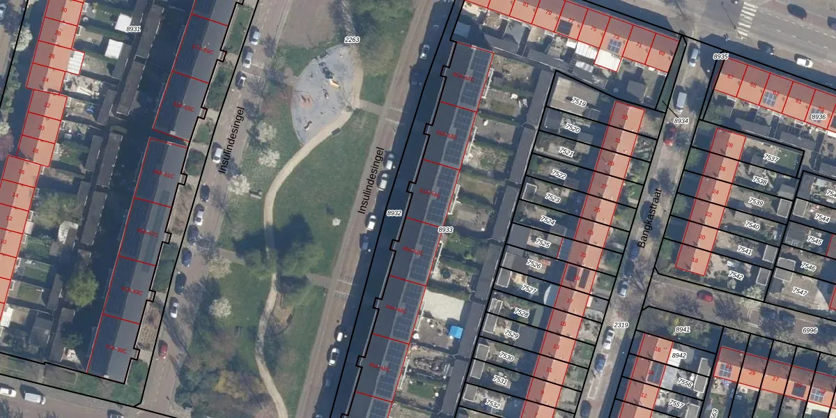 Insulindesingel 54-B is gelegen op kadastraal perceel VDG00D8933. Deze kadastrale aanduiding is uniek en wordt gebruikt door het Kadaster om eigendomsrechten en andere zakelijke rechten vast te leggen. Het perceel maakt onderdeel uit van de kadastrale gemeente Vlaardingen.