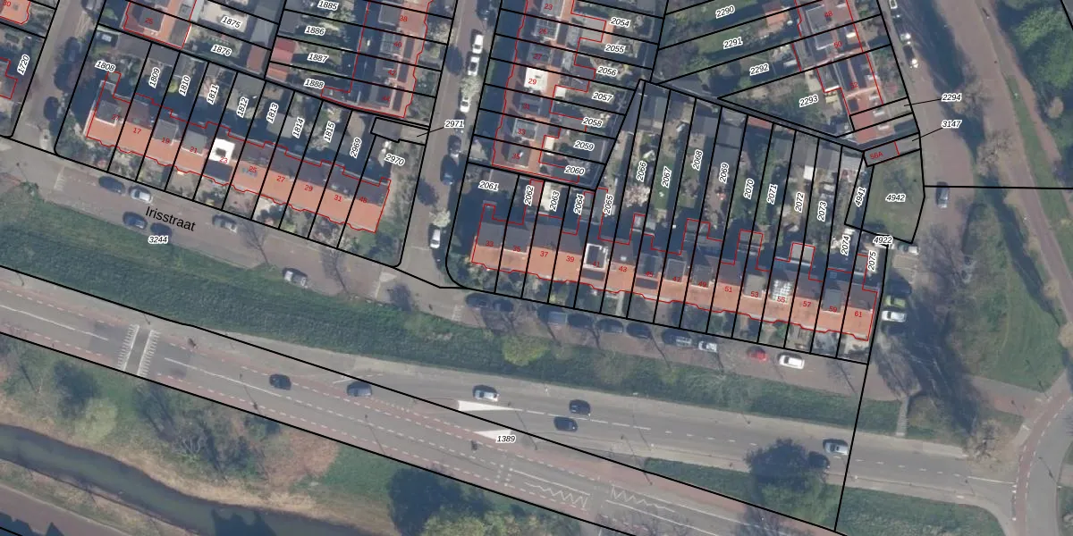 Het perceel waarop Irisstraat 37 staat heeft een oppervlakte van 112 m². Dit is een middelgroot perceel. De perceeloppervlakte wordt geregistreerd door het Kadaster. Gedetailleerde informatie over de maten van dit perceel kunt u vinden in het rapport Kadastrale kaart met maatvoering van Irisstraat 37.