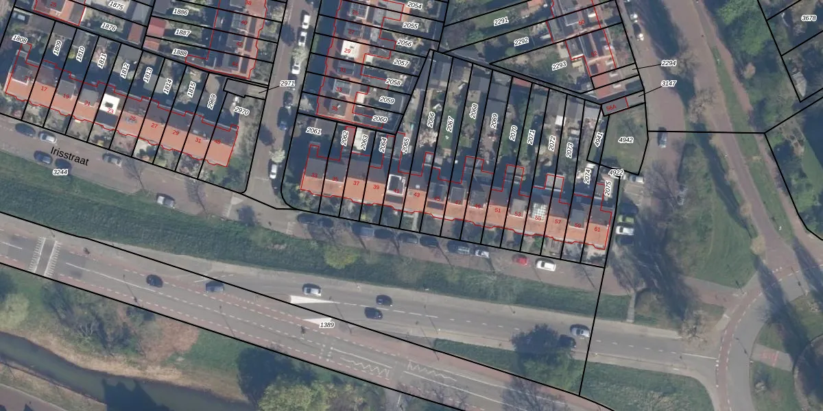 Irisstraat 43 is gelegen op kadastraal perceel VDG00G2066. Deze kadastrale aanduiding is uniek en wordt gebruikt door het Kadaster om eigendomsrechten en andere zakelijke rechten vast te leggen. Het perceel maakt onderdeel uit van de kadastrale gemeente Vlaardingen.