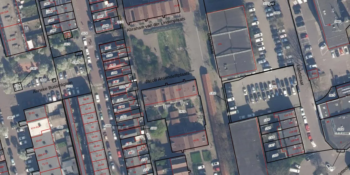 Het perceel waarop Jacob Assendelftplaats 10 staat heeft een oppervlakte van 1020 m². Dit is een zeer groot perceel. De perceeloppervlakte wordt geregistreerd door het Kadaster. Gedetailleerde informatie over de maten van dit perceel kunt u vinden in het rapport Kadastrale kaart met maatvoering van Jacob Assendelftplaats 10.