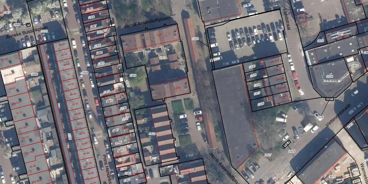 Het perceel waarop Jacob Assendelftplaats 18 staat heeft een oppervlakte van 1020 m². Dit is een zeer groot perceel. De perceeloppervlakte wordt geregistreerd door het Kadaster. Gedetailleerde informatie over de maten van dit perceel kunt u vinden in het rapport Kadastrale kaart met maatvoering van Jacob Assendelftplaats 18.