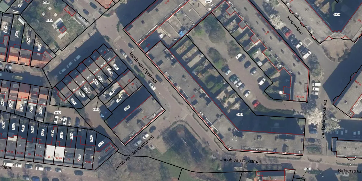 Het perceel waarop Jacob van Dijkstraat 4 staat heeft een oppervlakte van 2275 m². Dit is een zeer groot perceel. De perceeloppervlakte wordt geregistreerd door het Kadaster. Gedetailleerde informatie over de maten van dit perceel kunt u vinden in het rapport Kadastrale kaart met maatvoering van Jacob van Dijkstraat 4.
