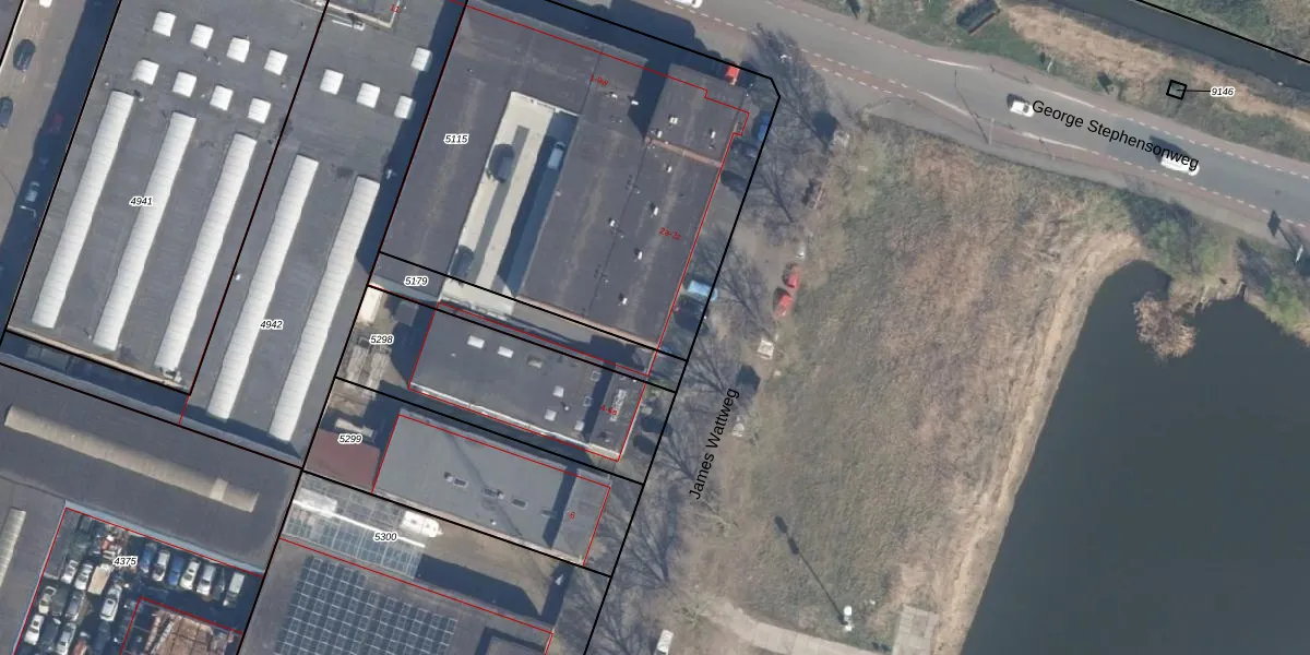 Het perceel waarop James Wattweg 2-d staat heeft een oppervlakte van 2250 m². Dit is een zeer groot perceel. De perceeloppervlakte wordt geregistreerd door het Kadaster. Gedetailleerde informatie over de maten van dit perceel kunt u vinden in het rapport Kadastrale kaart met maatvoering van James Wattweg 2-d.