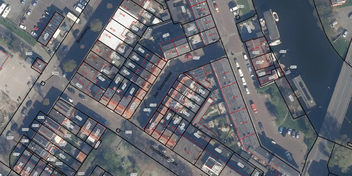 Het perceel waarop het adres ligt is VDG00-D-5143. De afkorting 'VDG00' staat voor kadastrale gemeente Vlaardingen. Het perceel is kleiner dan gemiddeld in Vlaardingen. Het perceel is 100 m² groot, terwijl het gemiddelde ligt op 1372,24 m². Het kleinste perceel in de kadastrale gemeente is 0 m² groot. De grootste perceeloppervlakte is 1,02 km². Op het perceel zijn 2 adressen aanwezig. De laatste wijziging in het de Basisregistratie Kadaster (BRK) was op 05-02-1998.