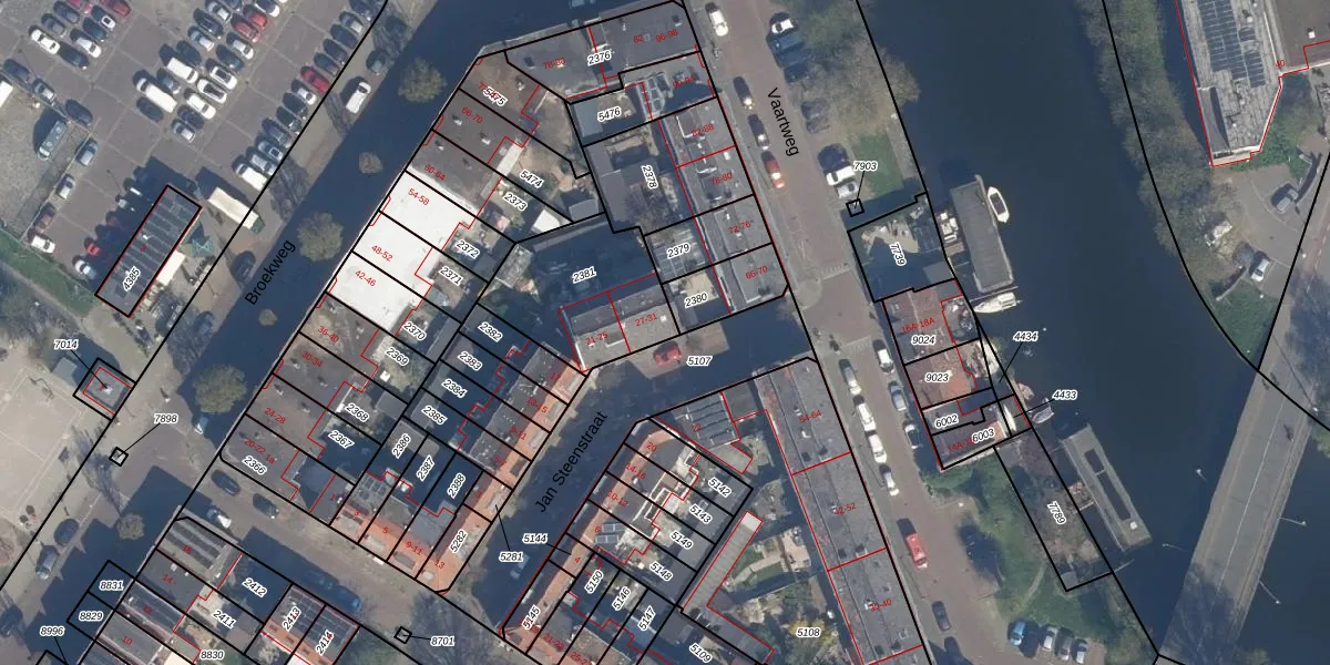 Het perceel waarop het adres ligt is VDG00-D-2381. De afkorting 'VDG00' staat voor kadastrale gemeente Vlaardingen. Het perceel is kleiner dan gemiddeld in Vlaardingen. Het perceel is 451 m² groot, terwijl het gemiddelde ligt op 1372,24 m². Het kleinste perceel in de kadastrale gemeente is 0 m² groot. De grootste perceeloppervlakte is 1,02 km². Op het perceel liggen in totaal 6 adressen. In de Basisregistratie Kadaster (BRK) werden de grenzen van het perceel geregistreerd op 05-02-1998.
