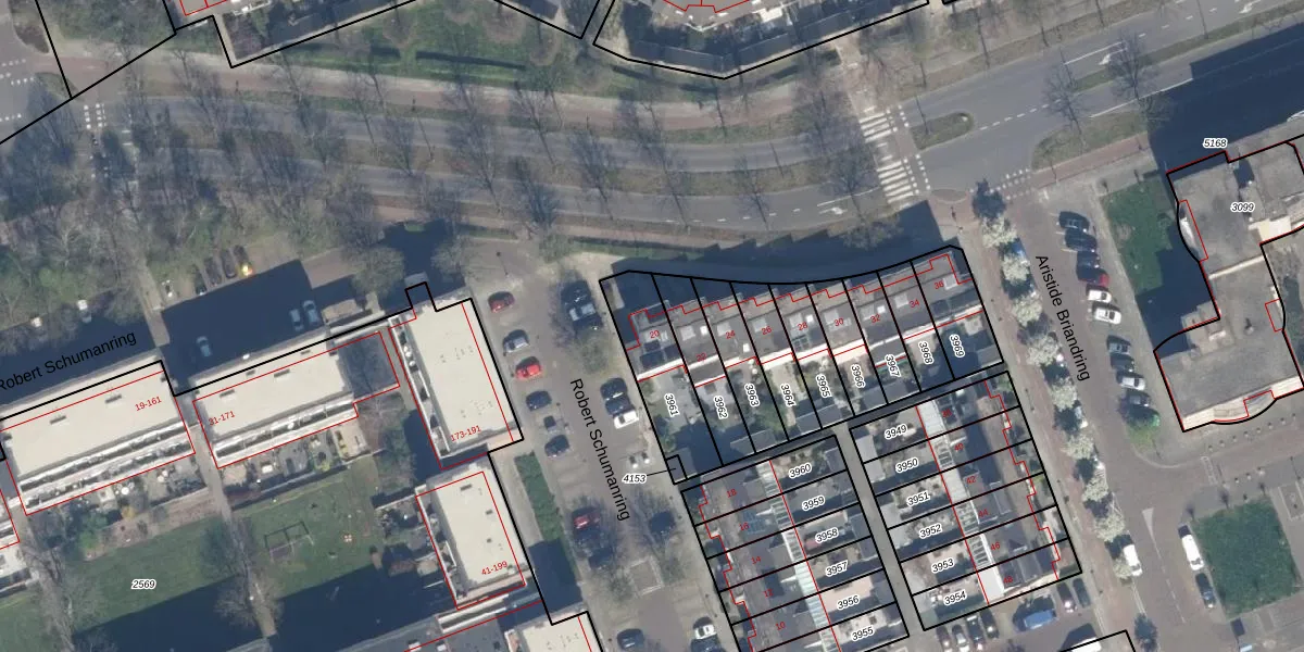 Gebruik de zoekbalk of klik op een perceel voor informatie over de adressen binnen dit perceel.