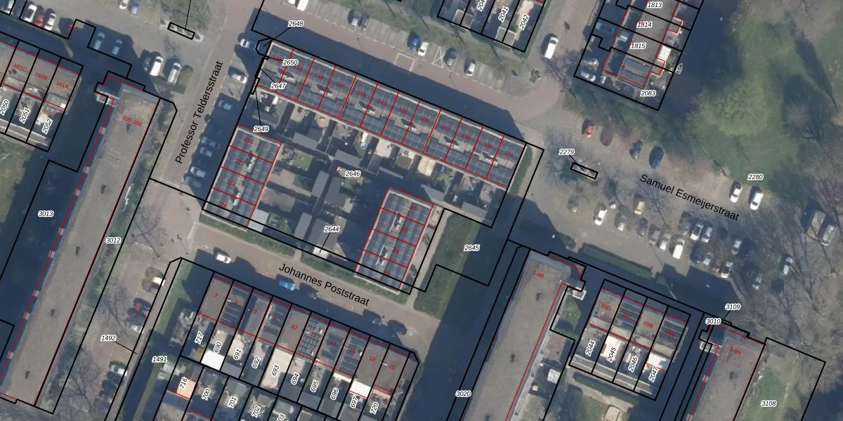 Het perceel waarop Johannes Poststraat 97 staat heeft een oppervlakte van 2480 m². Dit is een zeer groot perceel. De perceeloppervlakte wordt geregistreerd door het Kadaster. Gedetailleerde informatie over de maten van dit perceel kunt u vinden in het rapport Kadastrale kaart met maatvoering van Johannes Poststraat 97.