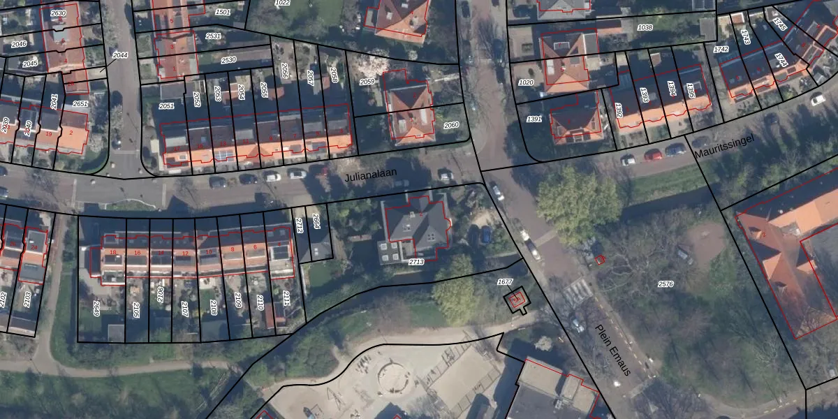 Gebruik de zoekbalk of klik op een perceel voor informatie over de adressen binnen dit perceel.