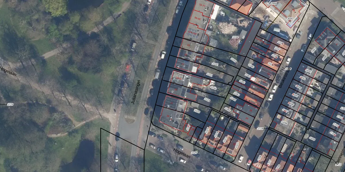 Het perceel waarop Julianasingel 23 staat heeft een oppervlakte van 296 m². Dit is een middelgroot perceel. De perceeloppervlakte wordt geregistreerd door het Kadaster. Gedetailleerde informatie over de maten van dit perceel kunt u vinden in het rapport Kadastrale kaart met maatvoering van Julianasingel 23.