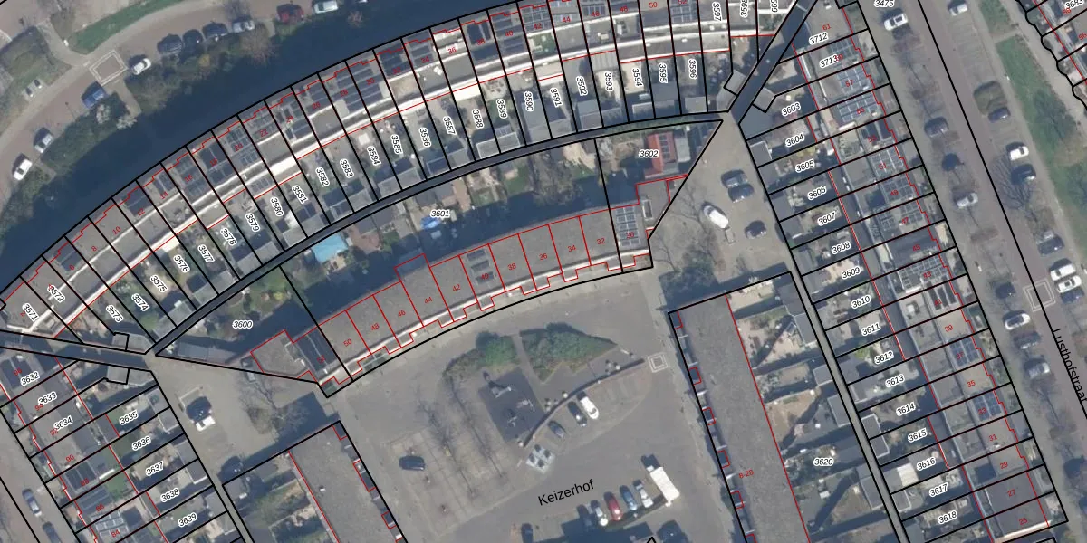 Keizerhof 36 is gelegen op kadastraal perceel VDG00G3601. Deze kadastrale aanduiding is uniek en wordt gebruikt door het Kadaster om eigendomsrechten en andere zakelijke rechten vast te leggen. Het perceel maakt onderdeel uit van de kadastrale gemeente Vlaardingen.