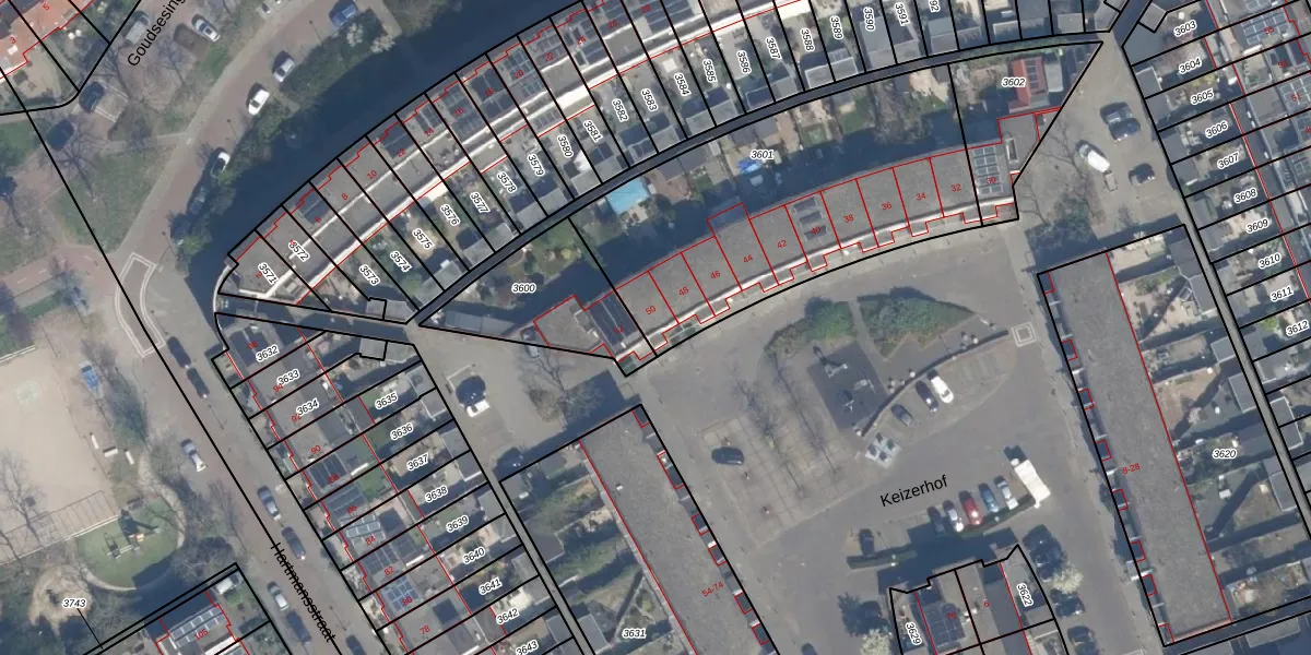 Keizerhof 50 is gelegen op kadastraal perceel VDG00G3601. Deze kadastrale aanduiding is uniek en wordt gebruikt door het Kadaster om eigendomsrechten en andere zakelijke rechten vast te leggen. Het perceel maakt onderdeel uit van de kadastrale gemeente Vlaardingen.