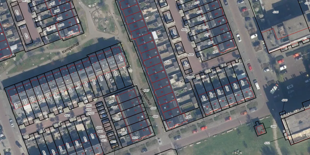 Het perceel waarop Kemperhof 28 staat heeft een oppervlakte van 1963 m². Dit is een zeer groot perceel. De perceeloppervlakte wordt geregistreerd door het Kadaster. Gedetailleerde informatie over de maten van dit perceel kunt u vinden in het rapport Kadastrale kaart met maatvoering van Kemperhof 28.