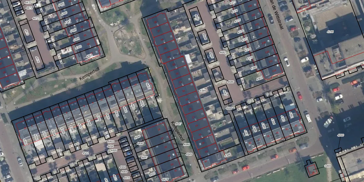 Het perceel waarop Kemperhof 30 staat heeft een oppervlakte van 1963 m². Dit is een zeer groot perceel. De perceeloppervlakte wordt geregistreerd door het Kadaster. Gedetailleerde informatie over de maten van dit perceel kunt u vinden in het rapport Kadastrale kaart met maatvoering van Kemperhof 30.