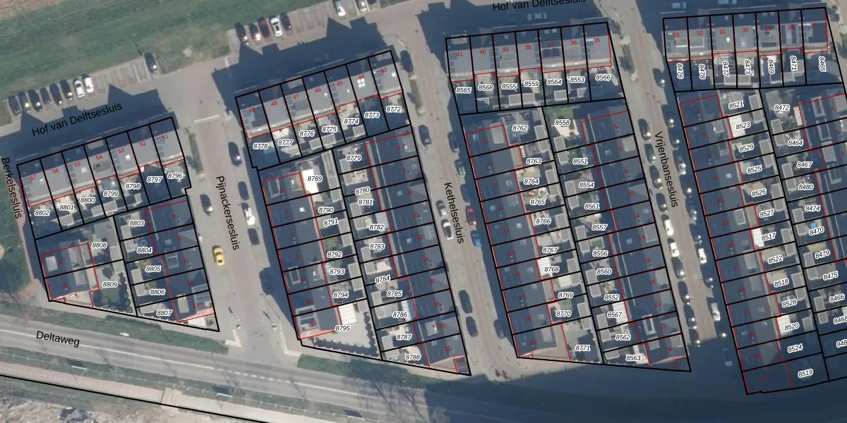 Gebruik de zoekbalk of klik op een perceel voor informatie over de adressen binnen dit perceel.