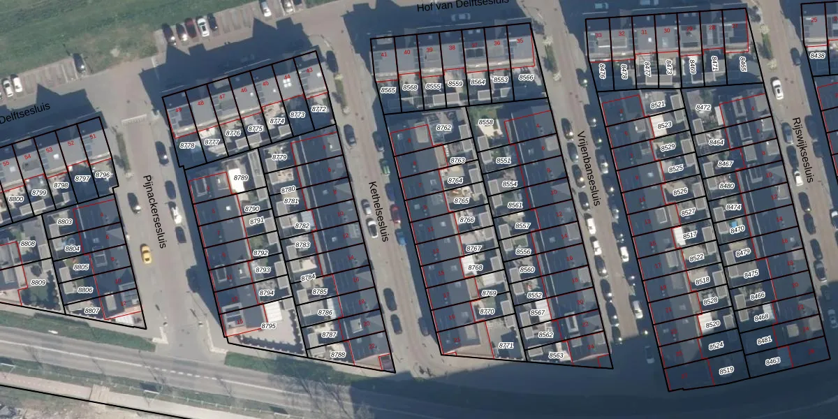 Gebruik de zoekbalk of klik op een perceel voor informatie over de adressen binnen dit perceel.