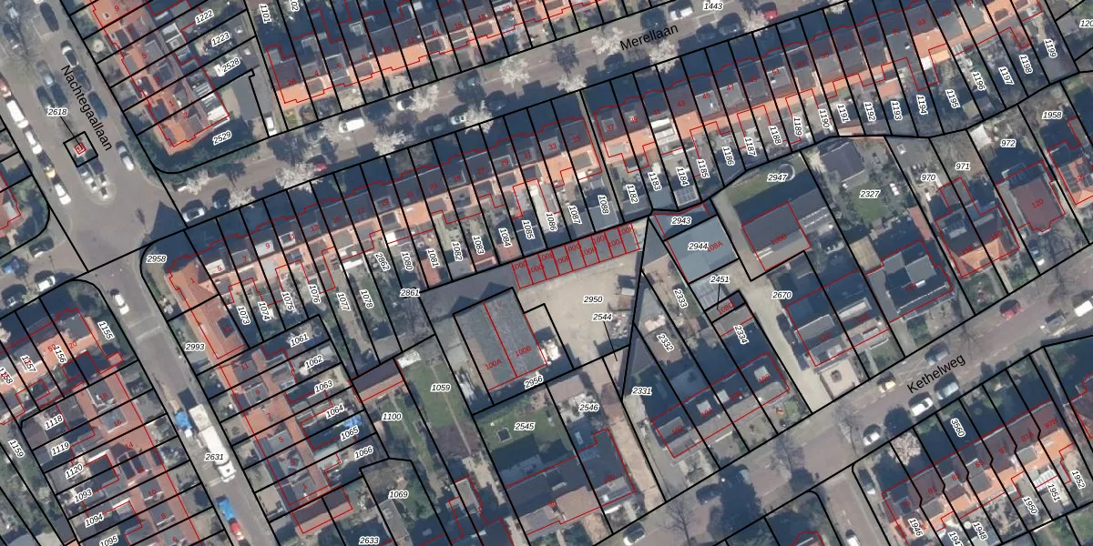 Kethelweg 100-E is gelegen op kadastraal perceel VDG00E2950. Deze kadastrale aanduiding is uniek en wordt gebruikt door het Kadaster om eigendomsrechten en andere zakelijke rechten vast te leggen. Het perceel maakt onderdeel uit van de kadastrale gemeente Vlaardingen.