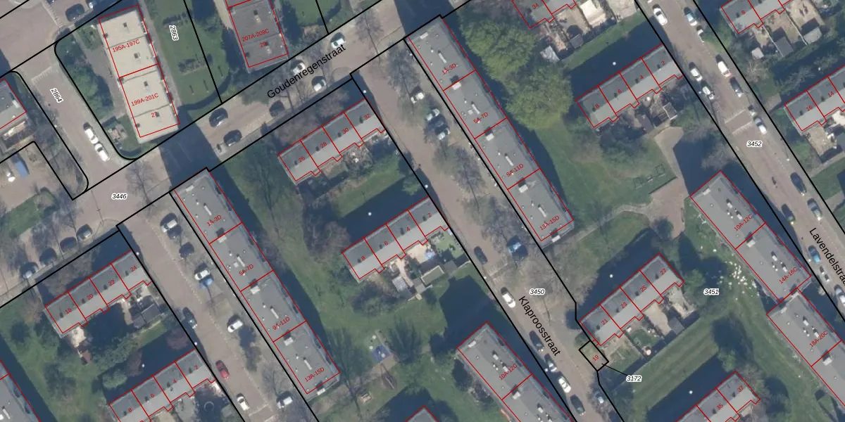 Het perceel waarop het adres ligt is VDG00-G-3449. De afkorting 'VDG00' staat voor kadastrale gemeente Vlaardingen. Het perceel is met 8665 m² relatief groot. Het gemiddelde ligt in de kadastrale gemeente Vlaardingen op 1372,52 m². Het grootste perceel in de kadastrale gemeente is 1,02 km². Het kleinste perceel heeft een oppervlakte van 0 m². Er zijn 88 adressen aanwezig op het perceel. De laatste wijziging in het de Basisregistratie Kadaster (BRK) was op 05-02-1998.