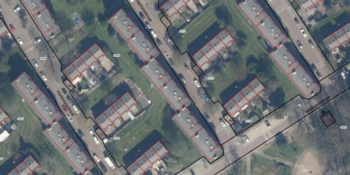 Het perceel waarop het adres ligt is VDG00-G-3449. De afkorting 'VDG00' staat voor kadastrale gemeente Vlaardingen. Het perceel is met 8665 m² relatief groot. Het gemiddelde ligt in de kadastrale gemeente Vlaardingen op 1372,52 m². De grootste perceeloppervlakte in de kadastrale gemeente is 1,02 km². De kleinste oppervlakte bedraagt 0 m². Er zijn 88 adressen aanwezig op het perceel. De huidige grenzen van het perceel zijn digitaal in de Basisregistratie Kadaster (BRK) geregistreerd op 05-02-1998.