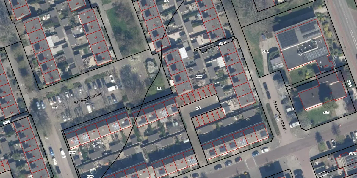 Koekoekstraat 21 is gelegen op kadastraal perceel VDG00K5404. Deze kadastrale aanduiding is uniek en wordt gebruikt door het Kadaster om eigendomsrechten en andere zakelijke rechten vast te leggen. Het perceel maakt onderdeel uit van de kadastrale gemeente Vlaardingen.