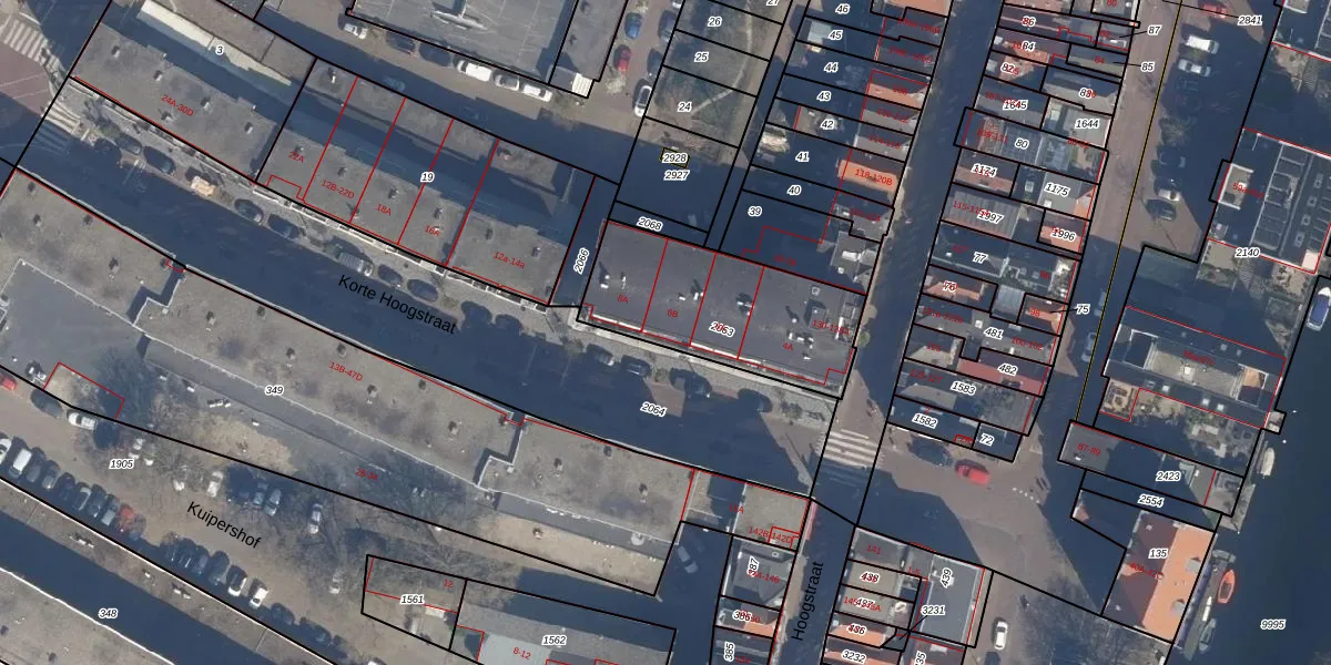 Korte Hoogstraat 6-B is gelegen op kadastraal perceel VDG00M2063. Deze kadastrale aanduiding is uniek en wordt gebruikt door het Kadaster om eigendomsrechten en andere zakelijke rechten vast te leggen. Het perceel maakt onderdeel uit van de kadastrale gemeente Vlaardingen.