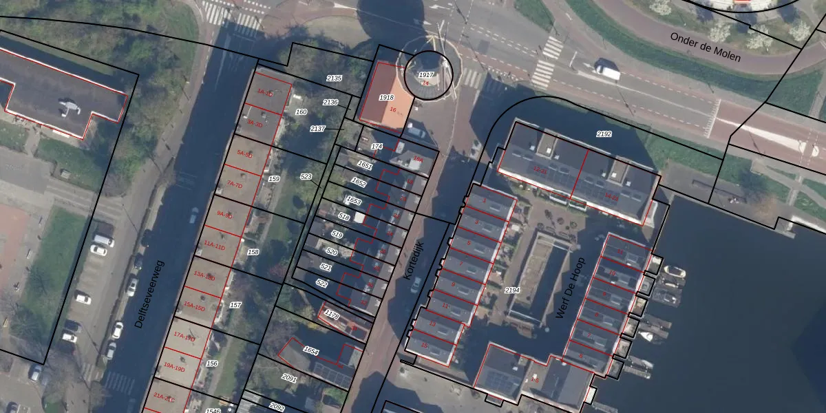 Het perceel waarop Kortedijk 20 staat heeft een oppervlakte van 98 m². Dit is een klein perceel. De perceeloppervlakte wordt geregistreerd door het Kadaster. Gedetailleerde informatie over de maten van dit perceel kunt u vinden in het rapport Kadastrale kaart met maatvoering van Kortedijk 20.