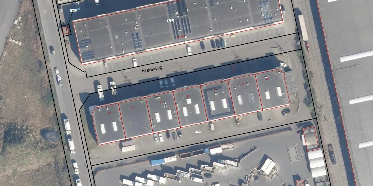 Kreekweg 16 is gelegen op kadastraal perceel VDG00D7186. Deze kadastrale aanduiding is uniek en wordt gebruikt door het Kadaster om eigendomsrechten en andere zakelijke rechten vast te leggen. Het perceel maakt onderdeel uit van de kadastrale gemeente Vlaardingen.