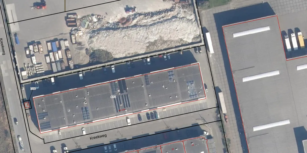 Het perceel waarop Kreekweg 8-T staat heeft een oppervlakte van 5030 m². Dit is een zeer groot perceel. De perceeloppervlakte wordt geregistreerd door het Kadaster. Gedetailleerde informatie over de maten van dit perceel kunt u vinden in het rapport Kadastrale kaart met maatvoering van Kreekweg 8-T.