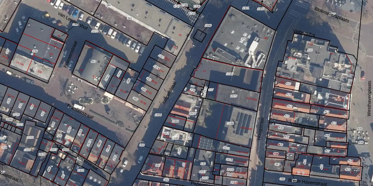 Het perceel waarop het adres ligt is VDG00-M-376. De afkorting 'VDG00' staat voor kadastrale gemeente Vlaardingen. De gemiddelde perceelgrootte in Vlaardingen is 1372,52 m². Dit perceel is kleiner: de perceeloppervlakte bedraagt 48 m². De grootste perceeloppervlakte in de kadastrale gemeente is 1,02 km². De kleinste oppervlakte bedraagt 0 m². Er zijn 2 adressen aanwezig op het perceel. In de Basisregistratie Kadaster (BRK) werden de grenzen van het perceel geregistreerd op 16-08-1999.