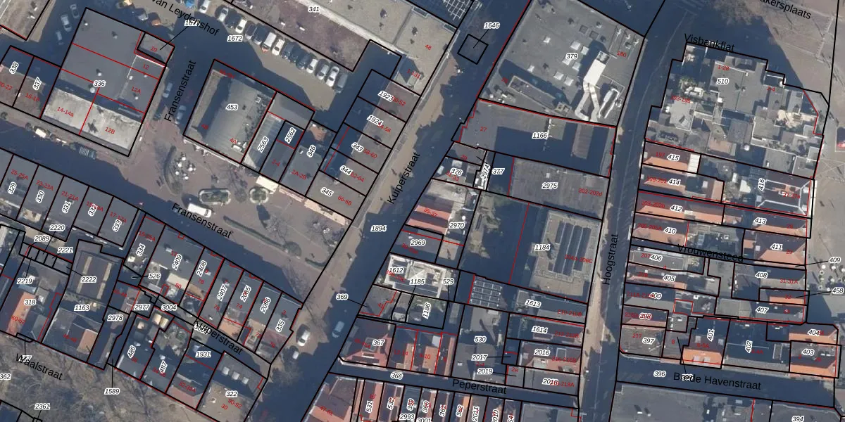 Het perceel waarop het adres ligt is VDG00-M-2970. De afkorting 'VDG00' staat voor kadastrale gemeente Vlaardingen. Het perceel is kleiner dan gemiddeld in Vlaardingen. Het perceel is 208 m² groot, terwijl het gemiddelde ligt op 1372,52 m². Het grootste perceel in de kadastrale gemeente is 1,02 km². Het kleinste perceel heeft een oppervlakte van 0 m². Op het perceel zijn 3 adressen aanwezig. De laatste wijziging in het de Basisregistratie Kadaster (BRK) was op 09-12-2021.