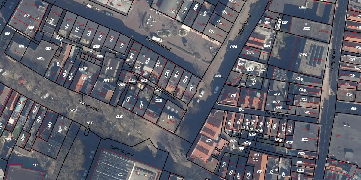 Het perceel waarop het adres ligt is VDG00-M-2086. De afkorting 'VDG00' staat voor kadastrale gemeente Vlaardingen. De gemiddelde perceelgrootte in Vlaardingen is 1372,52 m². Dit perceel is kleiner: de perceeloppervlakte bedraagt 80 m². De grootste perceeloppervlakte in de kadastrale gemeente is 1,02 km². De kleinste oppervlakte bedraagt 0 m². Er zijn 2 adressen aanwezig op het perceel. De laatste wijziging in het de Basisregistratie Kadaster (BRK) was op 05-11-2003.