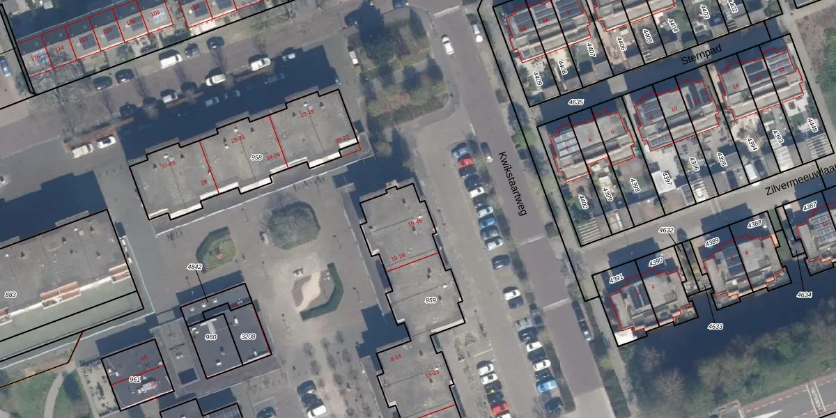 Kwikstaartweg 41 is gelegen op kadastraal perceel VDG00K959. Deze kadastrale aanduiding is uniek en wordt gebruikt door het Kadaster om eigendomsrechten en andere zakelijke rechten vast te leggen. Het perceel maakt onderdeel uit van de kadastrale gemeente Vlaardingen.