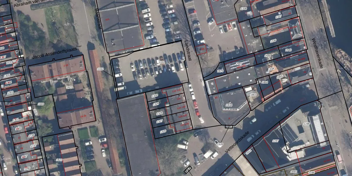 Het perceel waarop het adres ligt is VDG00-M-1330. De afkorting 'VDG00' staat voor kadastrale gemeente Vlaardingen. Het perceel is kleiner dan gemiddeld in Vlaardingen. Het perceel is 132 m² groot, terwijl het gemiddelde ligt op 1372,24 m². De grootste perceeloppervlakte in de kadastrale gemeente is 1,02 km². De kleinste oppervlakte bedraagt 0 m². Er zijn 2 adressen aanwezig op het perceel. De laatste wijziging in het de Basisregistratie Kadaster (BRK) was op 03-09-2008.