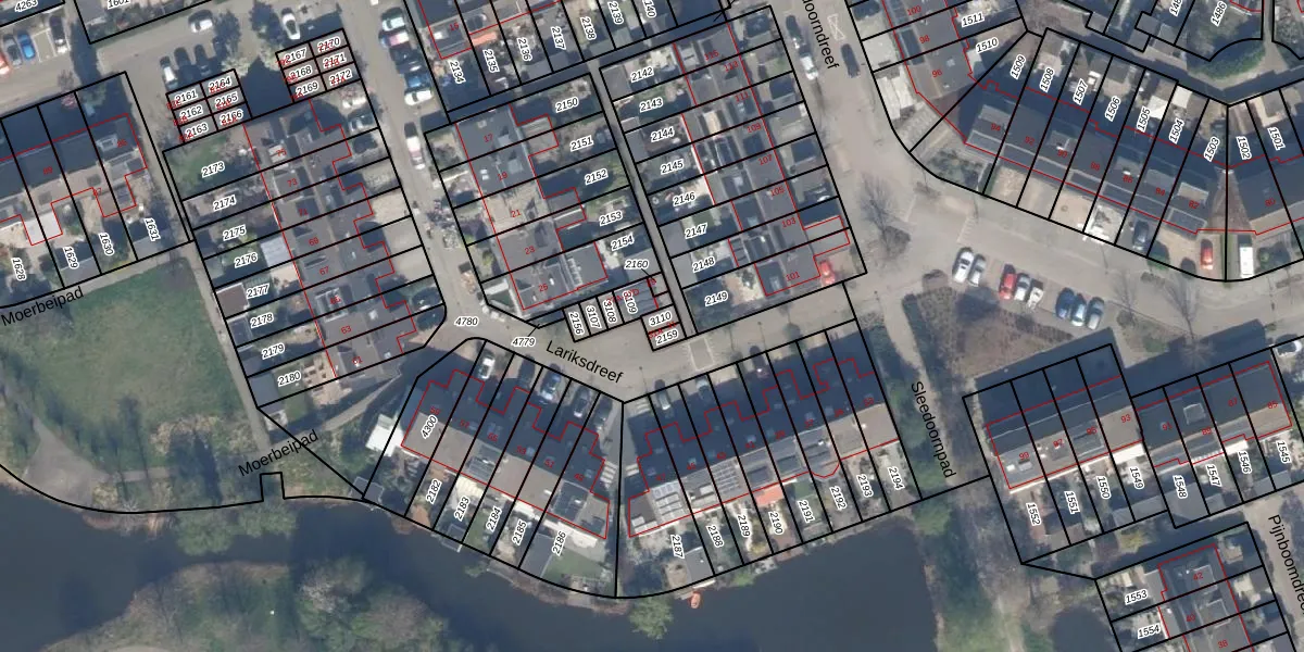 Het perceel waarop Lariksdreef 31 staat heeft een oppervlakte van 16 m². Dit is een klein perceel. De perceeloppervlakte wordt geregistreerd door het Kadaster. Gedetailleerde informatie over de maten van dit perceel kunt u vinden in het rapport Kadastrale kaart met maatvoering van Lariksdreef 31.