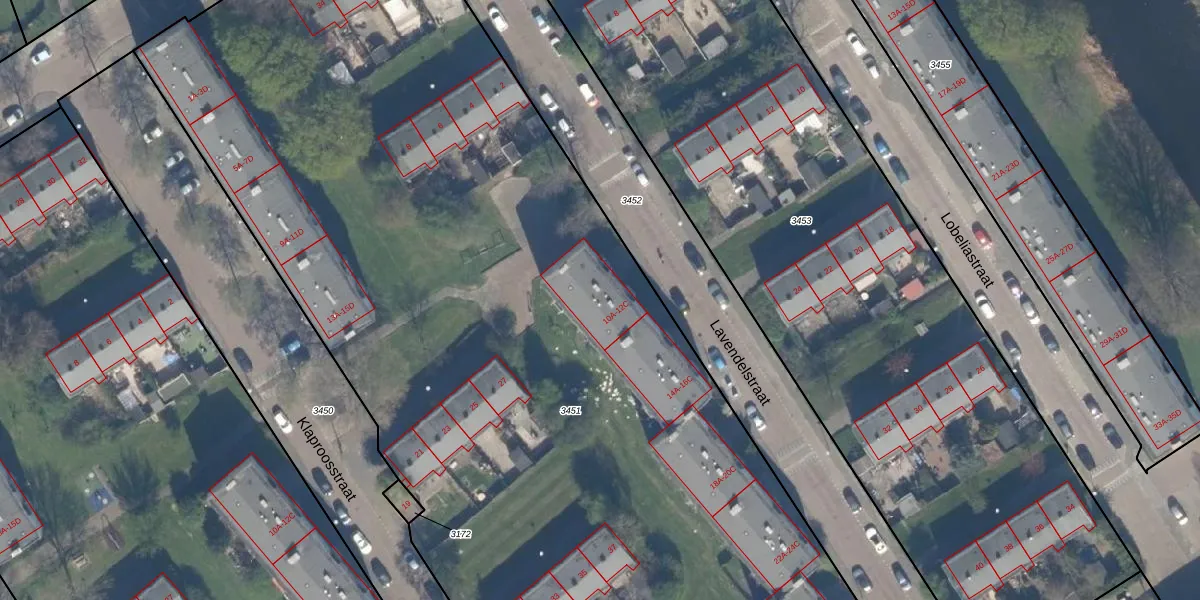 Lavendelstraat 12-C is gelegen op kadastraal perceel VDG00G3451. Deze kadastrale aanduiding is uniek en wordt gebruikt door het Kadaster om eigendomsrechten en andere zakelijke rechten vast te leggen. Het perceel maakt onderdeel uit van de kadastrale gemeente Vlaardingen.