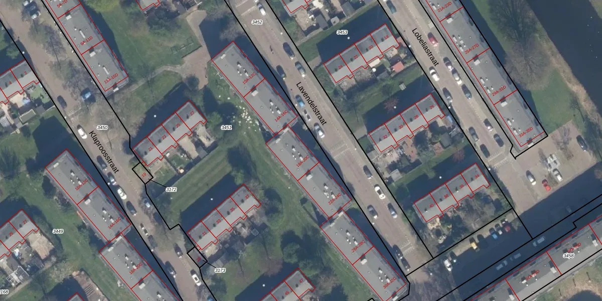 Lavendelstraat 20-A is gelegen op kadastraal perceel VDG00G3451. Deze kadastrale aanduiding is uniek en wordt gebruikt door het Kadaster om eigendomsrechten en andere zakelijke rechten vast te leggen. Het perceel maakt onderdeel uit van de kadastrale gemeente Vlaardingen.