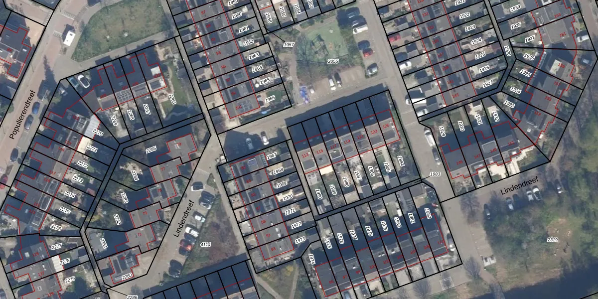 Gebruik de zoekbalk of klik op een perceel voor informatie over de adressen binnen dit perceel.