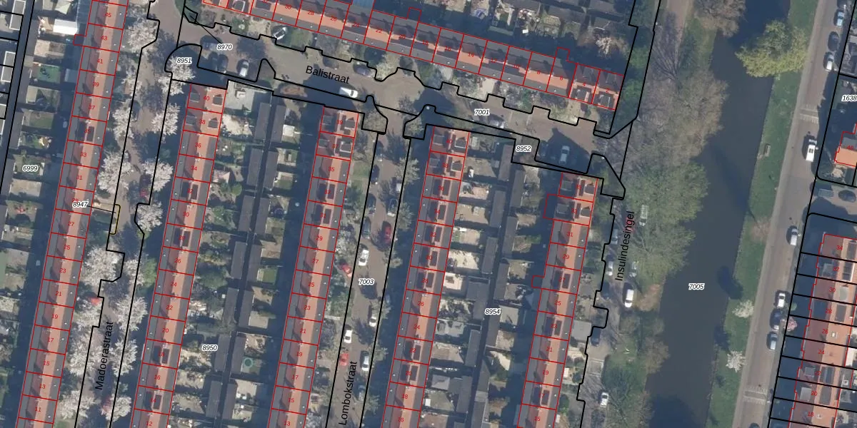 Het perceel waarop Lombokstraat 34 staat heeft een oppervlakte van 5339 m². Dit is een zeer groot perceel. De perceeloppervlakte wordt geregistreerd door het Kadaster. Gedetailleerde informatie over de maten van dit perceel kunt u vinden in het rapport Kadastrale kaart met maatvoering van Lombokstraat 34.