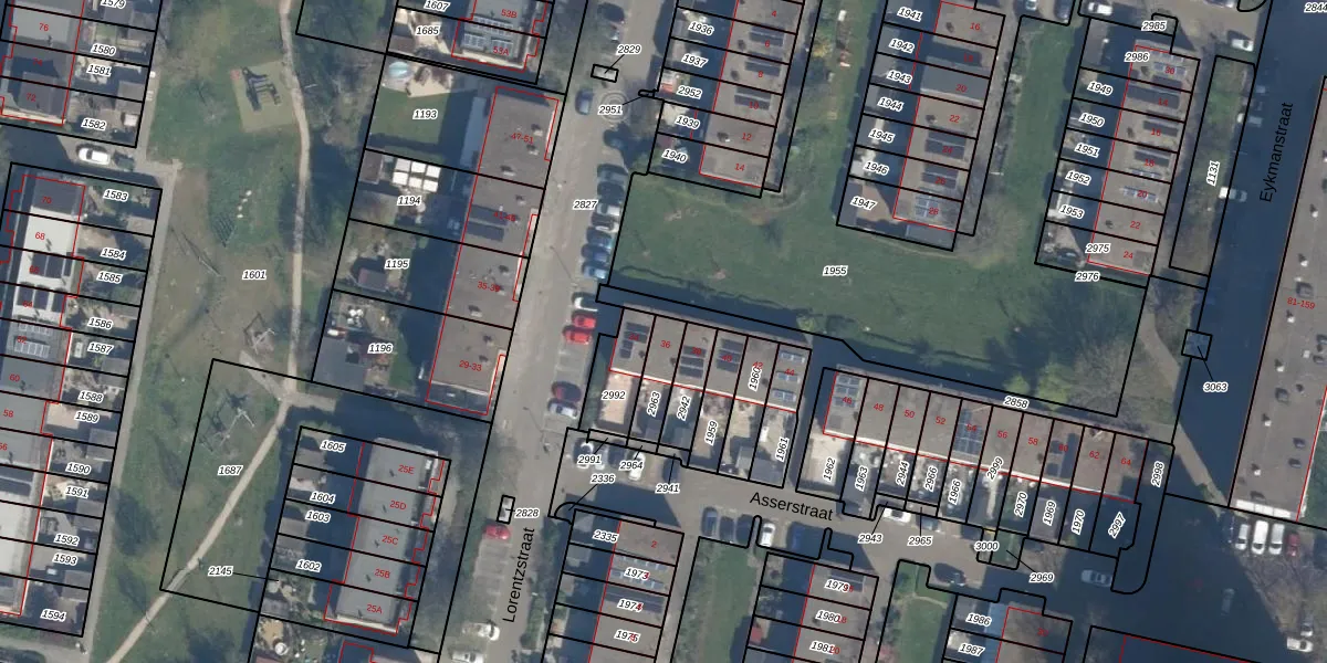 Het perceel waarop Lorentzstraat 36 staat heeft een oppervlakte van 90 m². Dit is een klein perceel. De perceeloppervlakte wordt geregistreerd door het Kadaster. Gedetailleerde informatie over de maten van dit perceel kunt u vinden in het rapport Kadastrale kaart met maatvoering van Lorentzstraat 36.