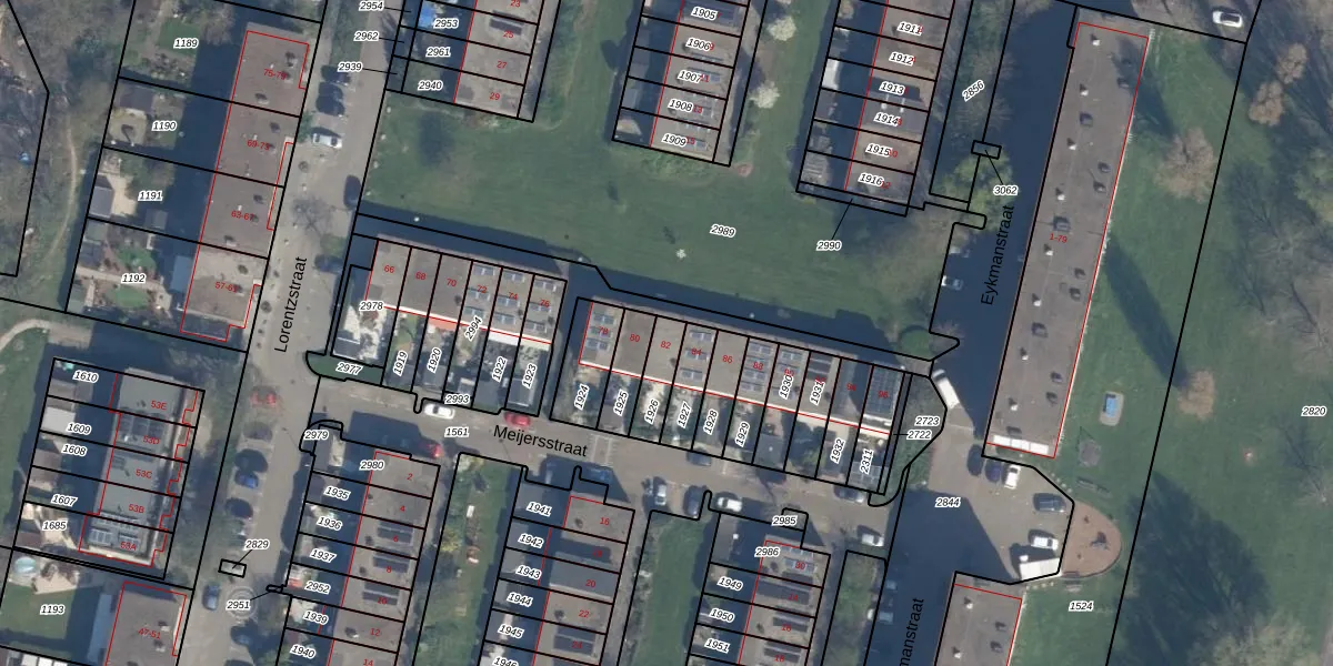 Het perceel waarop Lorentzstraat 82 staat heeft een oppervlakte van 89 m². Dit is een klein perceel. De perceeloppervlakte wordt geregistreerd door het Kadaster. Gedetailleerde informatie over de maten van dit perceel kunt u vinden in het rapport Kadastrale kaart met maatvoering van Lorentzstraat 82.