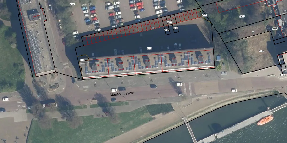 Maasboulevard 62 is gelegen op kadastraal perceel VDG00D9129. Deze kadastrale aanduiding is uniek en wordt gebruikt door het Kadaster om eigendomsrechten en andere zakelijke rechten vast te leggen. Het perceel maakt onderdeel uit van de kadastrale gemeente Vlaardingen.