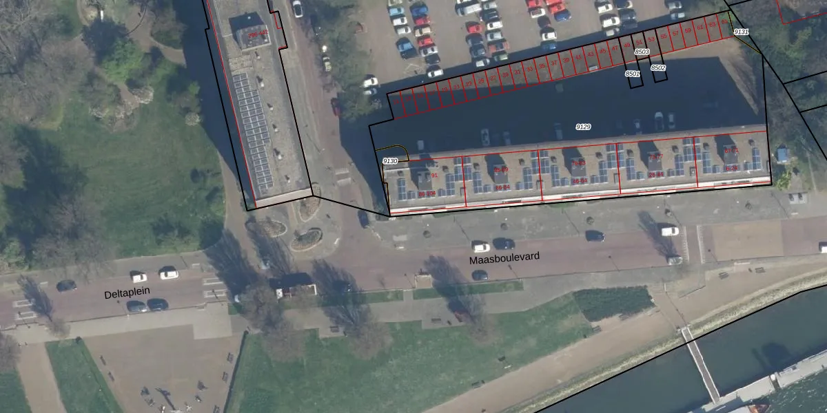 Het perceel waarop Maasboulevard 98 staat heeft een oppervlakte van 3283 m². Dit is een zeer groot perceel. De perceeloppervlakte wordt geregistreerd door het Kadaster. Gedetailleerde informatie over de maten van dit perceel kunt u vinden in het rapport Kadastrale kaart met maatvoering van Maasboulevard 98.