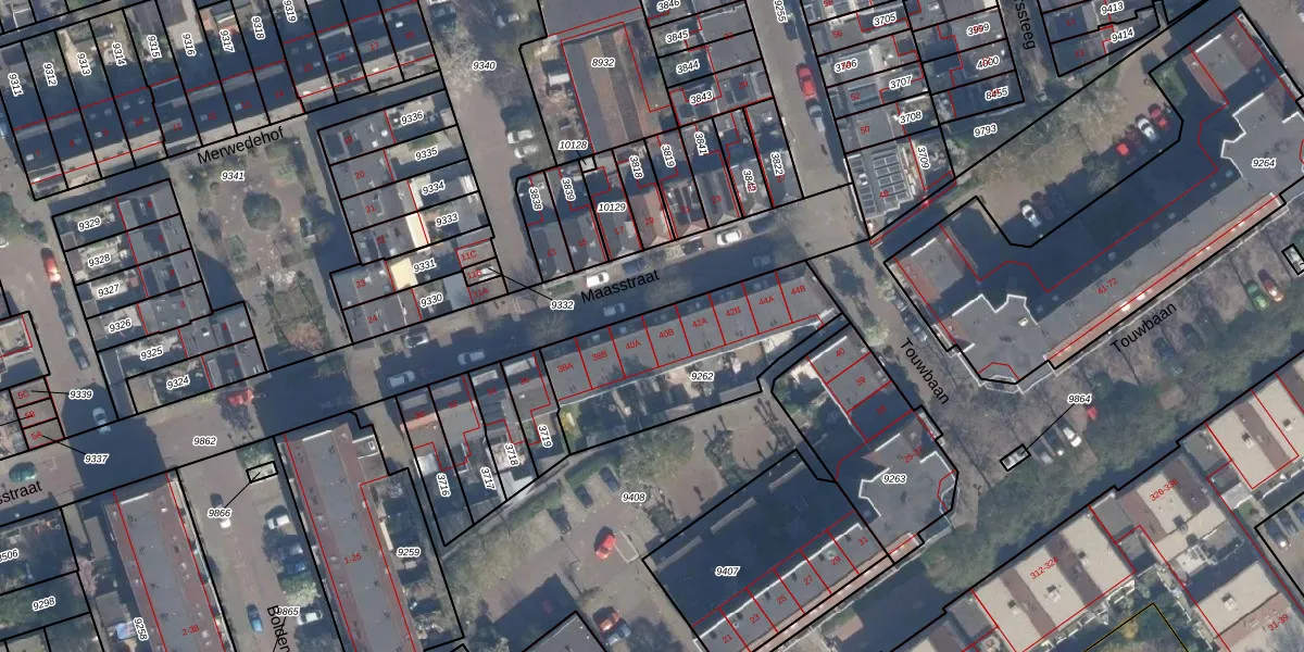 Maasstraat 40-B is gelegen op kadastraal perceel VDG00B9262. Deze kadastrale aanduiding is uniek en wordt gebruikt door het Kadaster om eigendomsrechten en andere zakelijke rechten vast te leggen. Het perceel maakt onderdeel uit van de kadastrale gemeente Vlaardingen.