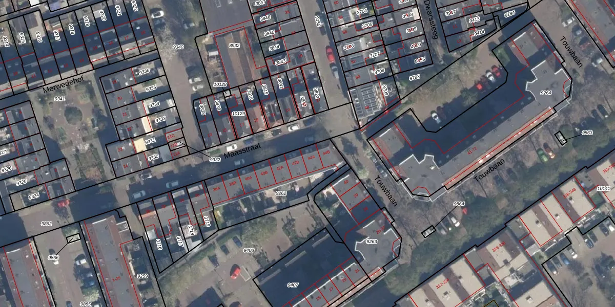 Maasstraat 44-A is gelegen op kadastraal perceel VDG00B9262. Deze kadastrale aanduiding is uniek en wordt gebruikt door het Kadaster om eigendomsrechten en andere zakelijke rechten vast te leggen. Het perceel maakt onderdeel uit van de kadastrale gemeente Vlaardingen.