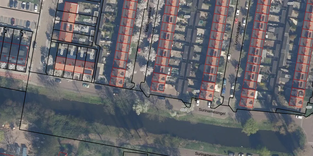 Het perceel waarop Madoerastraat 4 staat heeft een oppervlakte van 5662 m². Dit is een zeer groot perceel. De perceeloppervlakte wordt geregistreerd door het Kadaster. Gedetailleerde informatie over de maten van dit perceel kunt u vinden in het rapport Kadastrale kaart met maatvoering van Madoerastraat 4.