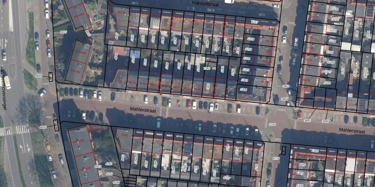 Het adres is gelegen op perceel 1258 in de sectie D en de kadastrale gemeente Vlaardingen. De kadastrale aanduiding is aldus VDG00-D-1258. De gemiddelde perceelgrootte in Vlaardingen is 1372,24 m². Dit perceel is kleiner: de perceeloppervlakte bedraagt 128 m². Het grootste perceel in de kadastrale gemeente is 1,02 km². Het kleinste perceel heeft een oppervlakte van 0 m². Op het perceel liggen in totaal 2 adressen. In de Basisregistratie Kadaster (BRK) werden de grenzen van het perceel geregistreerd op 20-11-2019.