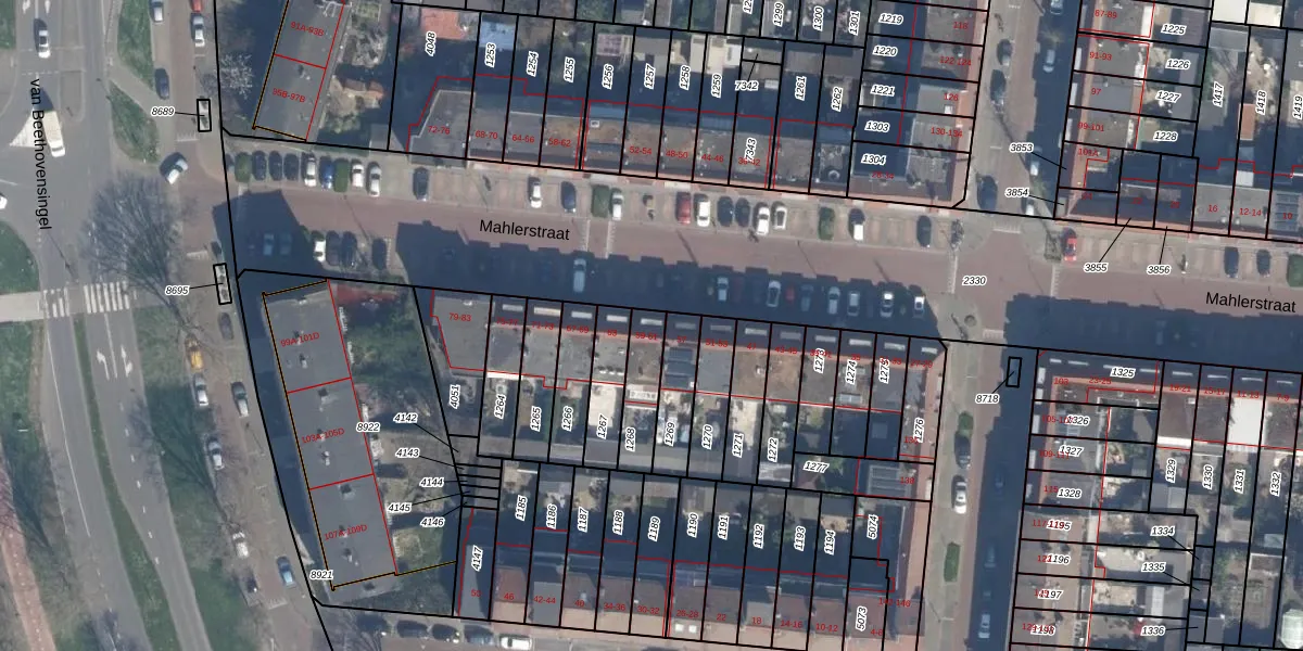 Mahlerstraat 59 is gelegen op kadastraal perceel VDG00D1268. Deze kadastrale aanduiding is uniek en wordt gebruikt door het Kadaster om eigendomsrechten en andere zakelijke rechten vast te leggen. Het perceel maakt onderdeel uit van de kadastrale gemeente Vlaardingen.