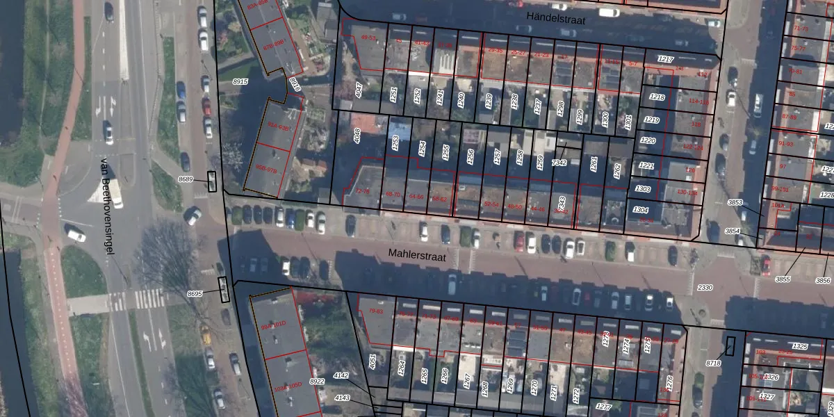 Het adres is gelegen op perceel 1254 in de sectie D en de kadastrale gemeente Vlaardingen. De kadastrale aanduiding is aldus VDG00-D-1254. De gemiddelde perceelgrootte in Vlaardingen is 1372,24 m². Dit perceel is kleiner: de perceeloppervlakte bedraagt 128 m². Het grootste perceel in de kadastrale gemeente is 1,02 km². Het kleinste perceel heeft een oppervlakte van 0 m². Er zijn 2 adressen aanwezig op het perceel. De laatste wijziging in het de Basisregistratie Kadaster (BRK) was op 20-11-2019.