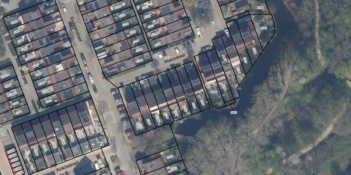 Gebruik de zoekbalk of klik op een perceel voor informatie over de adressen binnen dit perceel.