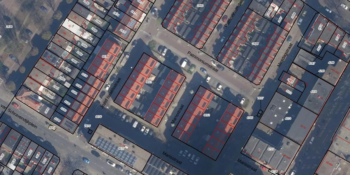 Marisstraat 20 is gelegen op kadastraal perceel VDG00D9011. Deze kadastrale aanduiding is uniek en wordt gebruikt door het Kadaster om eigendomsrechten en andere zakelijke rechten vast te leggen. Het perceel maakt onderdeel uit van de kadastrale gemeente Vlaardingen.