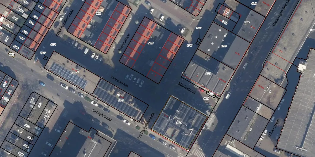 Het perceel waarop Marisstraat 4 staat heeft een oppervlakte van 957 m². Dit is een groot perceel. De perceeloppervlakte wordt geregistreerd door het Kadaster. Gedetailleerde informatie over de maten van dit perceel kunt u vinden in het rapport Kadastrale kaart met maatvoering van Marisstraat 4.